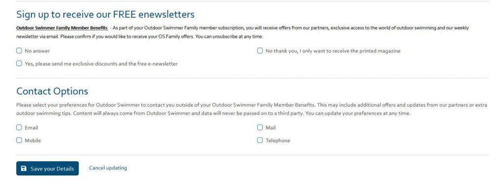If you subscribe to the digital edition through Pocket Mags then log into your Pocket Mags account via a browser, click on My Account and scroll down to select or deselect communications from Outdoor Swimmer.